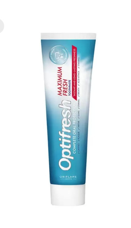خمیردندان اپتی فرش اوریفلیم مدل ماکسیمم فرش یا تازه کننده نفس، برای خوشبو کردن تنفس و حفظ بهداشت دهان و دندان فرمولاسیون و طراحی شده است. خمیر دندان اپتیفرش اوریفلیم مراقبت کامل از دهان و دندان را برای اعضای خانواده ارائه می دهد. این محصول دندان ها را تقویت و از ایجاد حفره و کرم خوردگی دندان ها جلوگیری می کند. همچنین احساس تازگی نفس را به شما هدیه میدهد و با داشتن دندان هایی سالم، میتوانید با اطمینان خاطر لبخند بزنید. خمیر دندان Maximum Fresh اوریفلیم با فناوری Protect Shield به بهترین صورت از مینای دندان، زبان، گونه ها و لثه ها به مدت 12 ساعت محافظت میکند. ضمن مراقبت از سلامت کل دهان ، طراوت دهان خود را به سطح جدیدی برسانید!