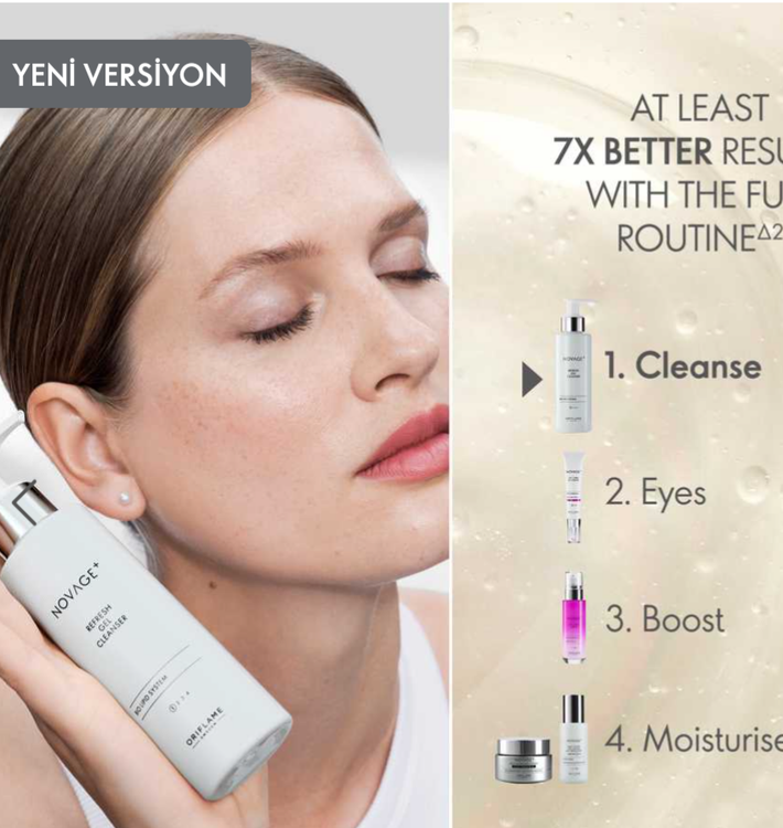 سری Novage+ Lift + Firm یک سیستم درمان ضد پیری 4 مرحله ای است که برای انواع پوست طراحی شده و با فناوری های فعال زیستی تقویت شده است. ژل پاک کننده ناخالصی ها را از بین می برد، سد محافظ پوست را حفظ می کند و آن را برای جذب مواد موثر آماده می کند.