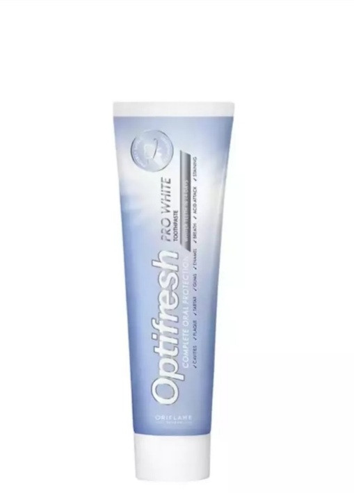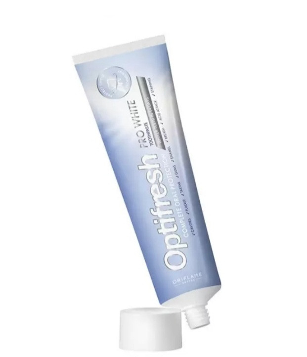 خمیر دندان سفید کننده اپتیفرش اوریفلیم، برای حفظ بهداشت دهان و دندان و بازگرداندن درخشش طبیعی دندان ها، فرموله و طراحی شده است. خمیر دندان پرو وایت اپتیفرش اوریفلیم مراقبت کاملی از دهان و دندان را برای اعضای خانواده ارائه می دهد. این محصول دندان ها را تقویت و از ایجاد حفره و کرم خوردگی دندان ها جلوگیری می کند. همچنین با داشتن دندان هایی سالم و درخشان، میتوانید با اطمینان خاطر لبخند بزنید. خمیر دندان Pro White اپتی فرش اوریفلیم با فناوری Protect Shield به بهترین صورت از مینای دندان، زبان، گونه ها و لثه ها به مدت 12 ساعت محافظت میکند. و با تکنولوژی Whitening Active به دندان ها کمک می کند درخشش و سفیدی طبیعی خود را بازیابند.